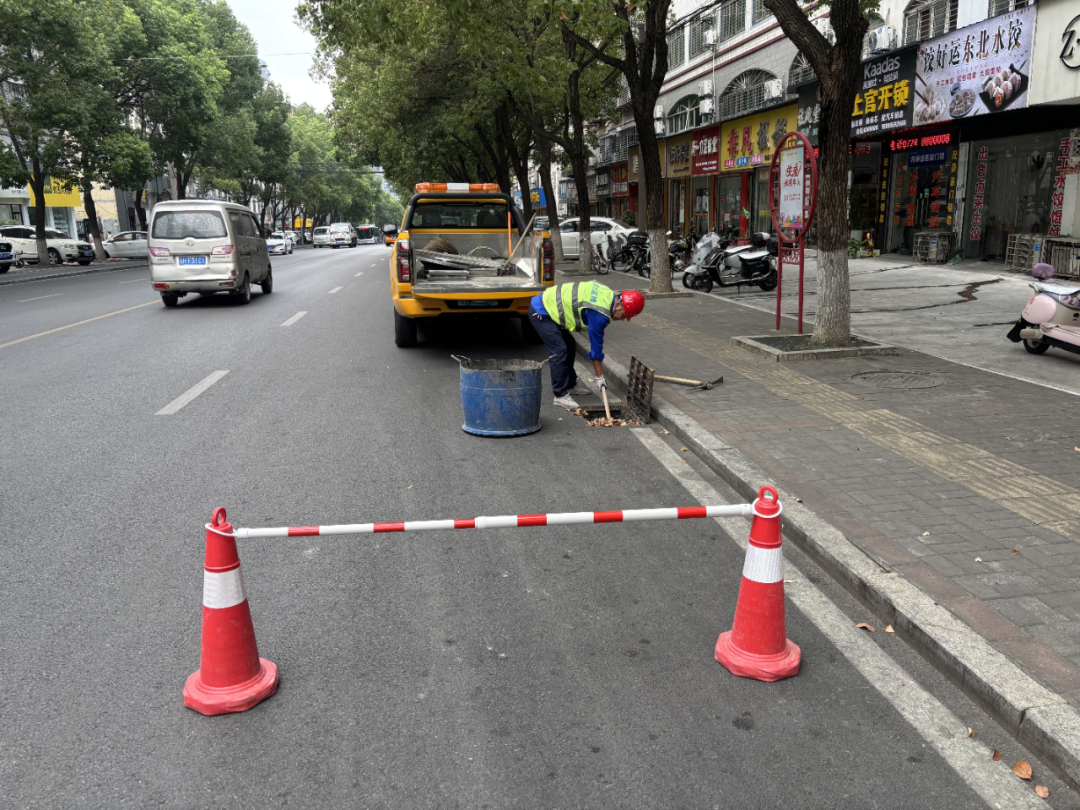 排水公司運(yùn)維人員正在開啟雨水箅蓋進(jìn)行清淤