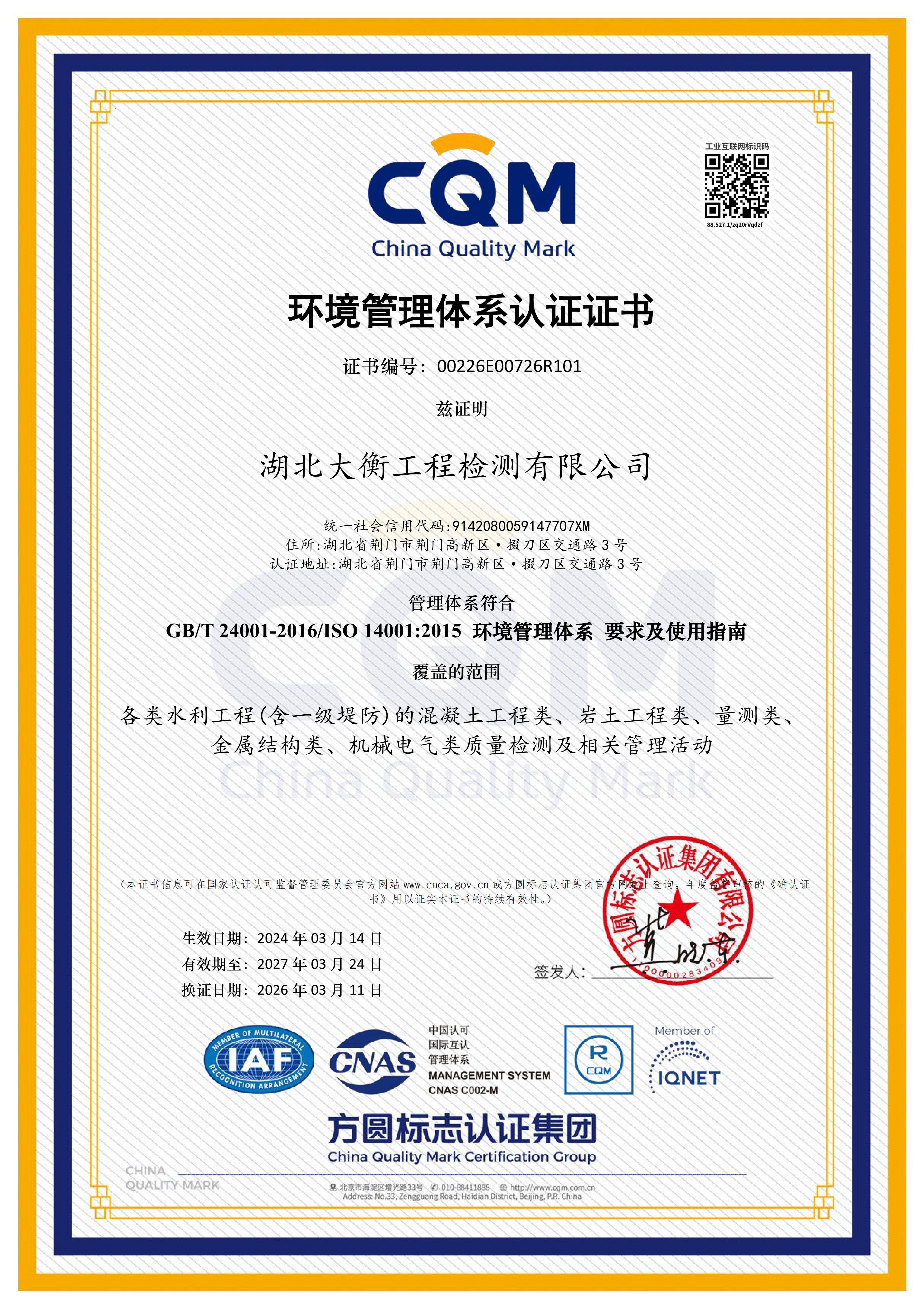 此次“QEO”三體系再認證圓滿通過,是大衡公司持續(xù)深化國企改革、夯實管理基礎、提升核心競爭力的重要體現(xiàn)。下一步,大衡公司將嚴格對標集團“十五五”質(zhì)量發(fā)展專項規(guī)劃部署,健全一體化質(zhì)量管理體系,厚植質(zhì)量文化底蘊,強化水利工程檢測全流程精細化管控,持續(xù)鍛造規(guī)范化、專業(yè)化、可靠化的水利工程檢測服務品牌,為集團高質(zhì)量發(fā)展提供堅實技術(shù)支撐與質(zhì)量保障。